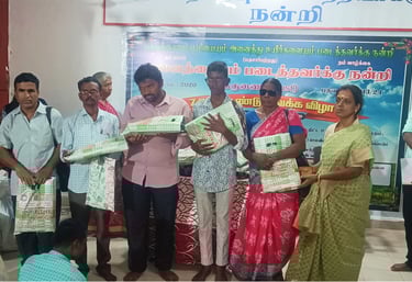 On our 7th year anniversary, aid services were provided to 500 people, including the visually impaired, physically challenged individuals, those who cannot walk, individuals with developmental challenges, the elderly, and sanitation workers, by the immense mercy of the 'Creator of All' (Secular).