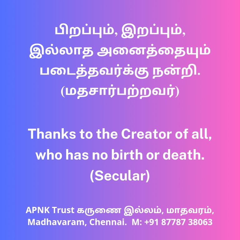 APNK Trust, Muthu Mari Amman Kovil Street, Behind Murari Hospital, Francis Colony, Madhavaram, Chennai 600060, Tamil Nadu.